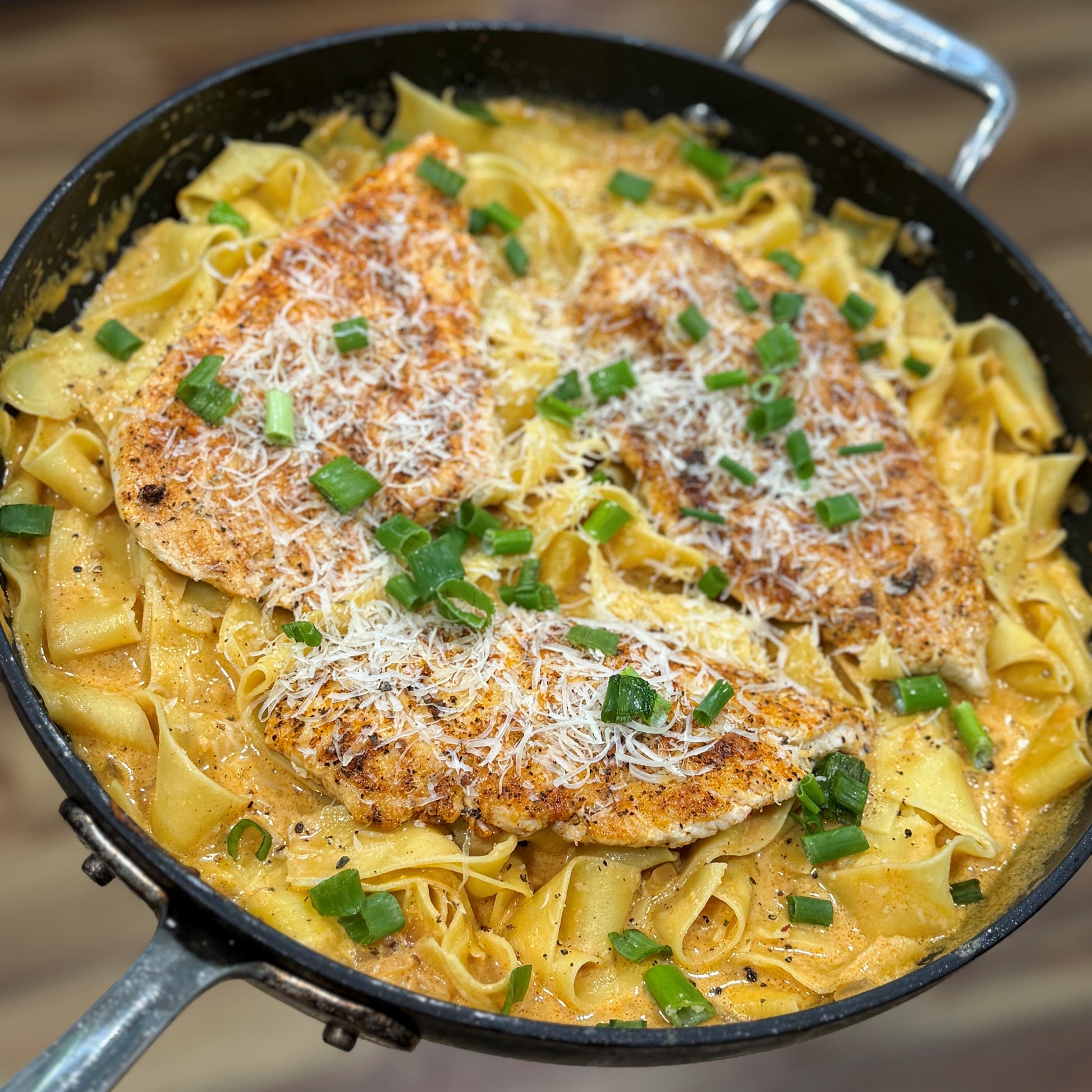 Tender, lean chicken breast glazed in a savory-sweet gochujang sauce, tossed with al dente pasta and a lighter, creamy Alfredo infused with garlic and parmesan. Finished with a touch of heat and served alongside fresh steamed broccoli for a balanced, protein-packed comfort dish with a Korean-inspired kick.